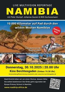 „Unterwegs im wilden Westen Namibias“ heißt der Titel einer moderierten Live-Multivision Reportage, die von Peter Stumpf, Johanna Zauner und Willi Gschossmann am Donnerstag, 30. Oktober, im Kino Berchtesgaden gezeigt wird. Beginn ist um 20.00 Uhr, Einlass ab 19.30 Uhr.