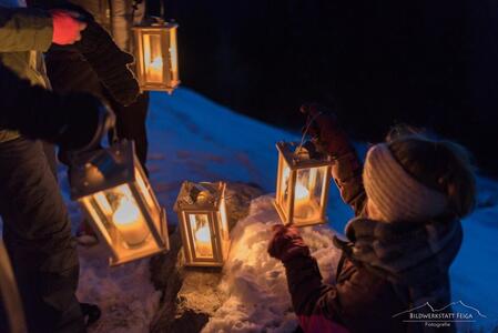 Am Treffpunkt mit Laternen ausgestattet wandern wir gemeinsam durch die Dämmerung in Richtung Malerwinkl. Unterwegs hören wir eine spannenden Geschichte. Am Aussichtspunkt angekommen, lauschen wir den Klängen der Trompetenspieler und genießen den Tiefblick auf den Königssee. Zum Abschluss stärken wir uns auf der Terrasse des Brandtnerhofs mit wärmendem Kinderpunsch für die Kleinen und Glühwein für die großen Gäste sowie weihnachtlichem Gebäck. Kommt mit uns auf eine Reise voller Glücksmomente!