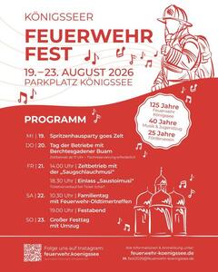 Vom 19. bis 23. August 2026 findet am Parkplatz in Königssee das große Feuerwehrfest statt.